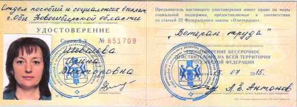 Ирина Викторовна обладатель звания "Ветеран труда" и почетного звания "Заслуженный работник социальной защиты населения Российской Федерации"